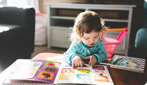 Fine motor skills will be developing, and they will be capable of pointing to and picking up small objects on sight. A preference for using either the right or left hand will start to emerge, and they will be able to hold a crayon to scribble on paper. After watching how to build a tower using three or four blocks, they will start being able to do this without help. By the age of two, most infants enjoy simple picture books, often recognising and putting their index finger on boldly coloured items on the page. They are also able to imitate others in their actions and are able to use ordinary things correctly like a toothbrush or a cup.