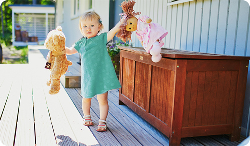At two years, a toddler may be: using a spoon and holding a cup to feed themselves, starting to run, pretending to feed a teddy, taking off their clothes with little help